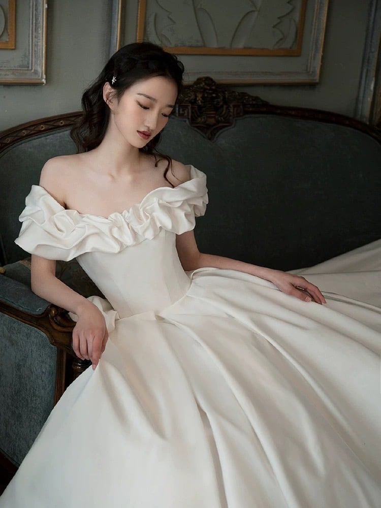 サテン フリルオフショルダー プリンセスドレス ※ベール別売 P014